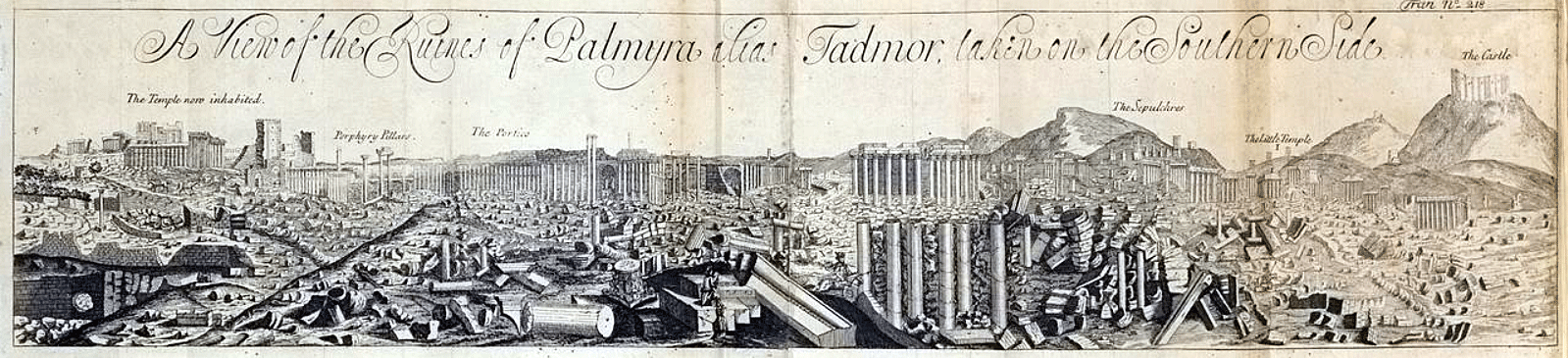 ... being inform’d by the natives that the Ruins of the City of Tadmor were more considerable than they had yet seen, they were tempted to enterprise this hazardous and painful Voyage over the Desart”.
